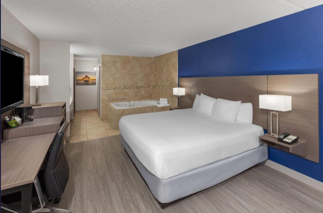 The room was clean. The beds were comfortable. Enough towels for all 6 people without having to ask. The staff was very friendly and helpful. We will definitely stay here again! It is not on the main strip, so it is quiet, but close enough for everything to be moments away.