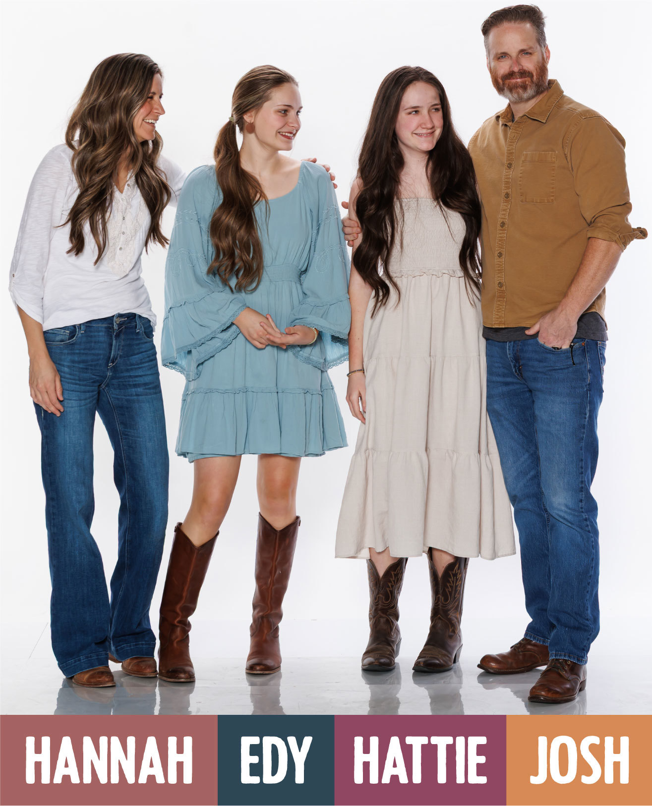 Band leader Josh Hall first picked up the guitar at age 13 and spent nearly two decades leading worship at his church. Alongside his wife Hannah and their five children, he built a life centered around faith, family, and music on their small Northwest Arkansas farm. Hannah, a bestselling Christian children’s book author, discovered her own musical calling during the COVID lockdown when she picked up a ukulele. Soon she added guitar and banjo to her repertoire—and developed a fondness for channeling her inner June Carter.
