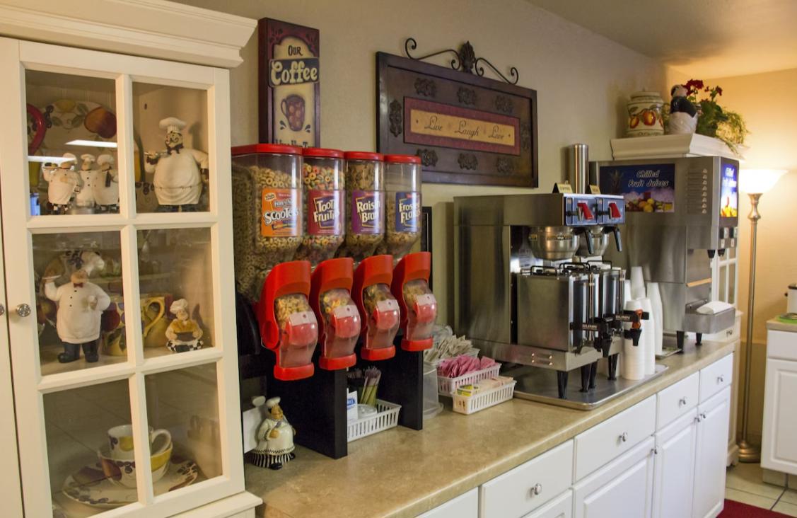 Hot Breakfast is served each morning and includes hot waffles, fruit and eggs, sausage & gravy, oatmeal, pastries, bagels, cereal, juice, milk, tea, hot chocolate, and coffee. Relax in comfort in the beautiful loungers around the outdoor pool after a long day of sight seeing.